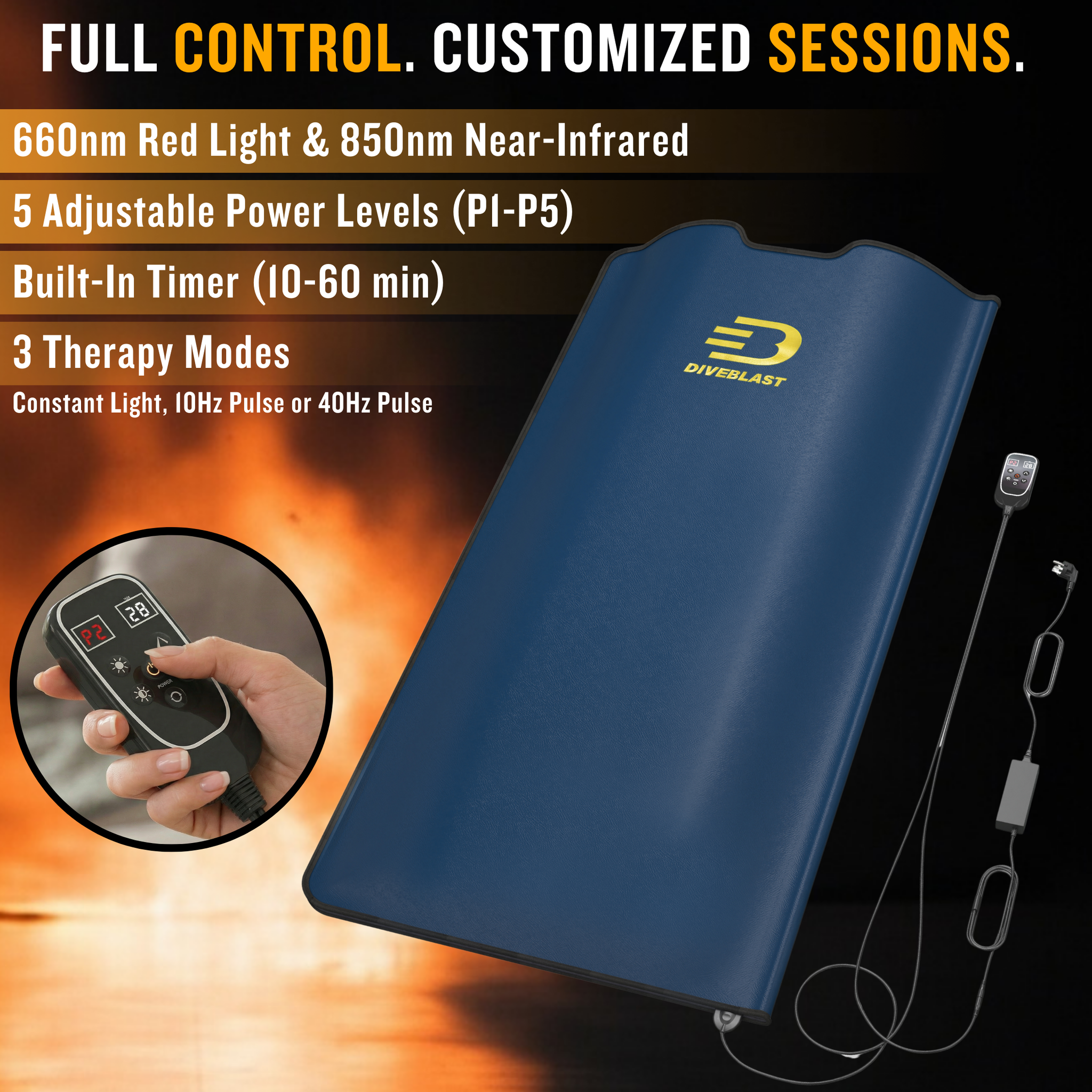 - THERAPEUTIC IRRADIANCE — Delivering 130 mW/cm², the Diveblast full body infrared red light therapy mat and blanket provides the light intensity needed for effective full-body exposure, avoiding the limitations of underpowered designs.